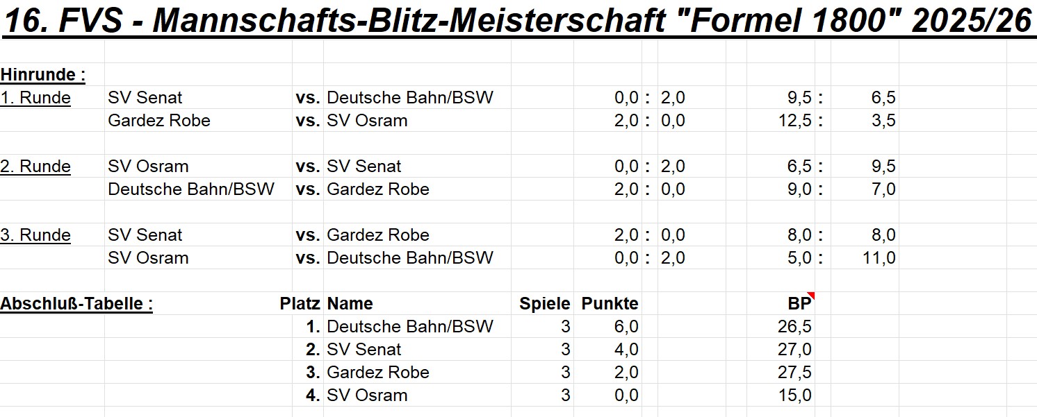 Mannschafts- Blitz- Meisterschaft "Formel 1800" 2025/26 der FV Schach e.V.
